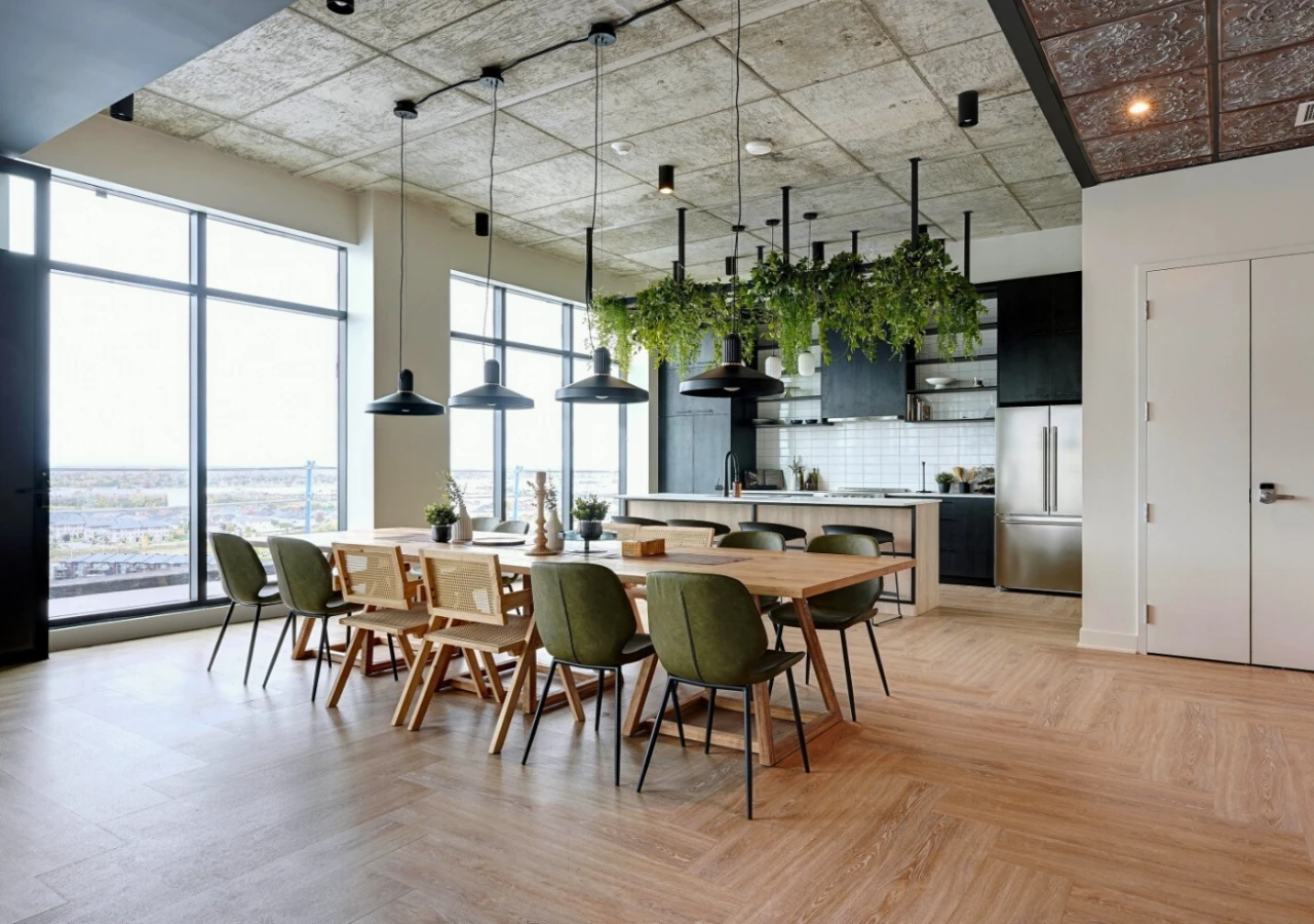 - Finitions haut de gamme : comptoirs de quartz, planchers flottants, fenêtres du sol au plafond